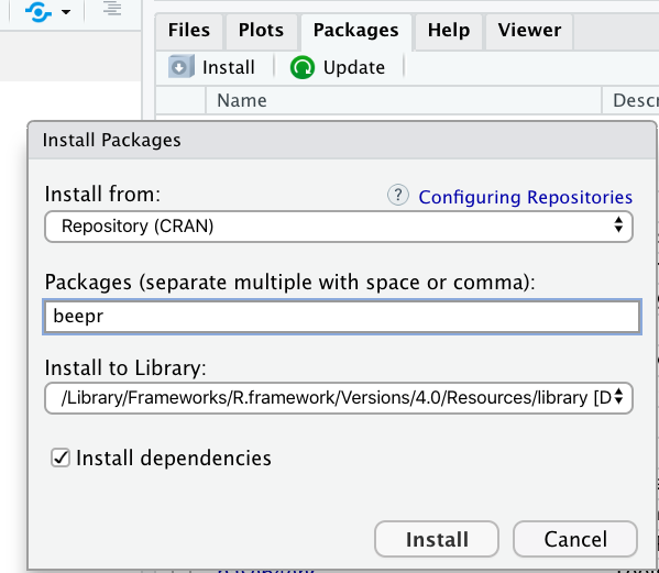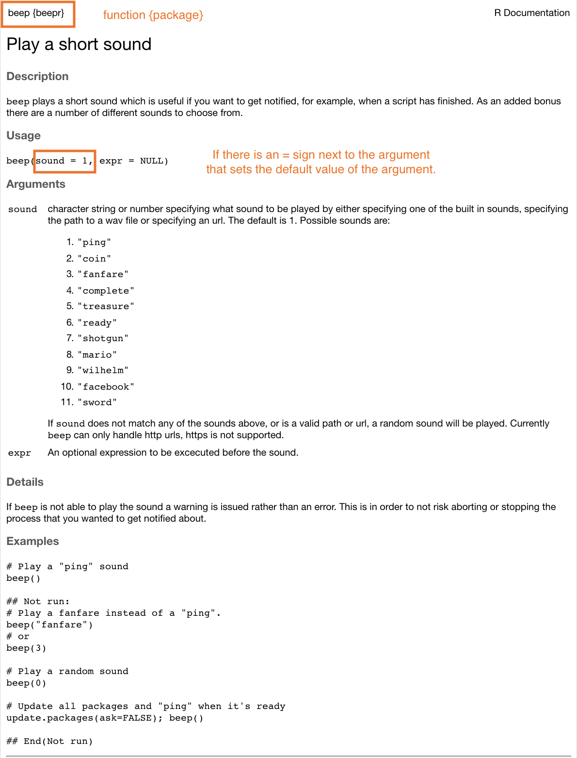 Useful when you are going to use a function once or few times. Also useful if there are any conflicts. For instance if there is some other package in your environment that has a beep() function that prints the word beep, you would want to distinguish the beep function from the beepr package and the beep function from the other imaginary package.