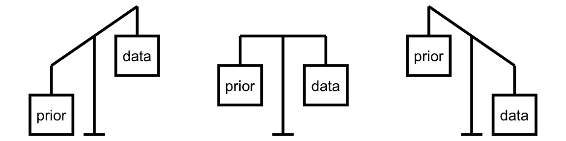 \[\text{posterior} = \frac{\text{prior}\cdot\text{likelihood}}{\text{normalizing constant}}\]