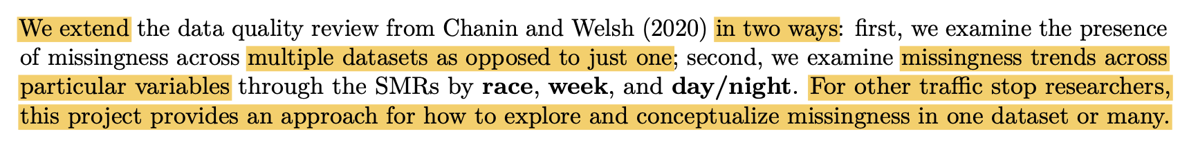 From Exploring Missingness and its Implications on Traffic Stop Data (Amber Lee, winner at 2020 Fall USRESP)